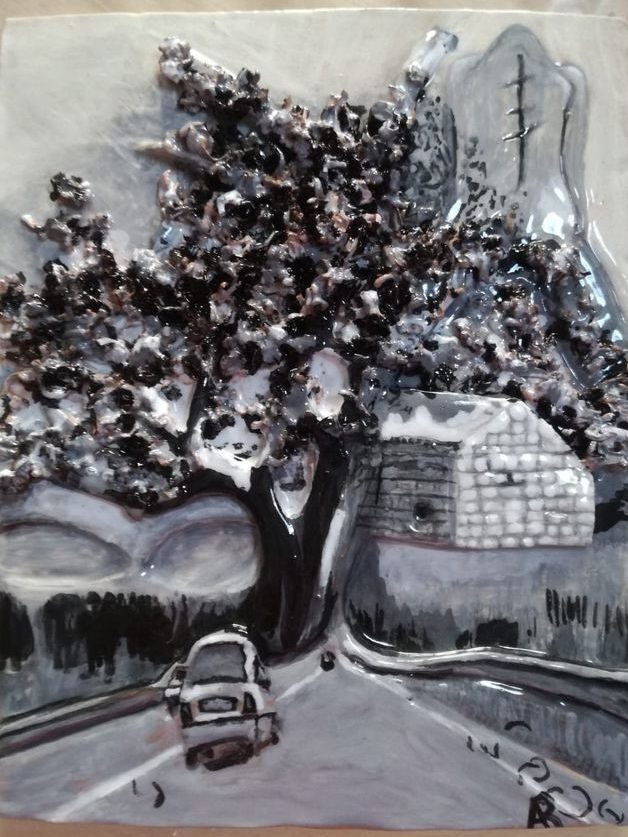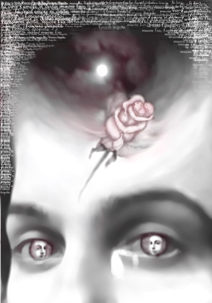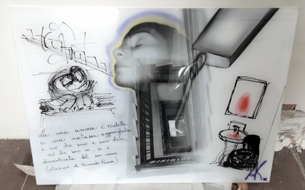 “strada”, elaborato digitale di foto personali, 2006“Romantica”, elaborato digitale di foto personali e scrittura creativa, 2006“Strada”, 25 x 20 cm, ceramica smaltata, 2021. “una strada attraversata solo in parte osservata/conosciuta che si proietta verso l’ignoto di una residenza costantemente “oltre”.“Volto in costruzione”,50 x 70 cm, pittura acrilica e inchiostro su cartone, 2023. “un volto anonimo non riconoscibile e identificabile esprime nel presente, attraverso il contrasto dei complementari, il tentativo di armonizzare ciò che rimane del sè con il desiderio virtuale”“Intro-versione”, elaborato digitale di foto e disegno su sketchbook, stampa su plexiglass, 80 x 57 cm. “visione onirica del mio mondo interiore in emersione”“O.. Essere” , Elaborazione su sketchbook.. 2023“Soffio di candeline”, Elaborazione digitale su sketchbook, 2023.“Sogno inquieto/condiviso”, Elaborazione su sketchbook, 2023“Virtù”, Disegno da foto personali, elaborazione su sketchbook, 2023
